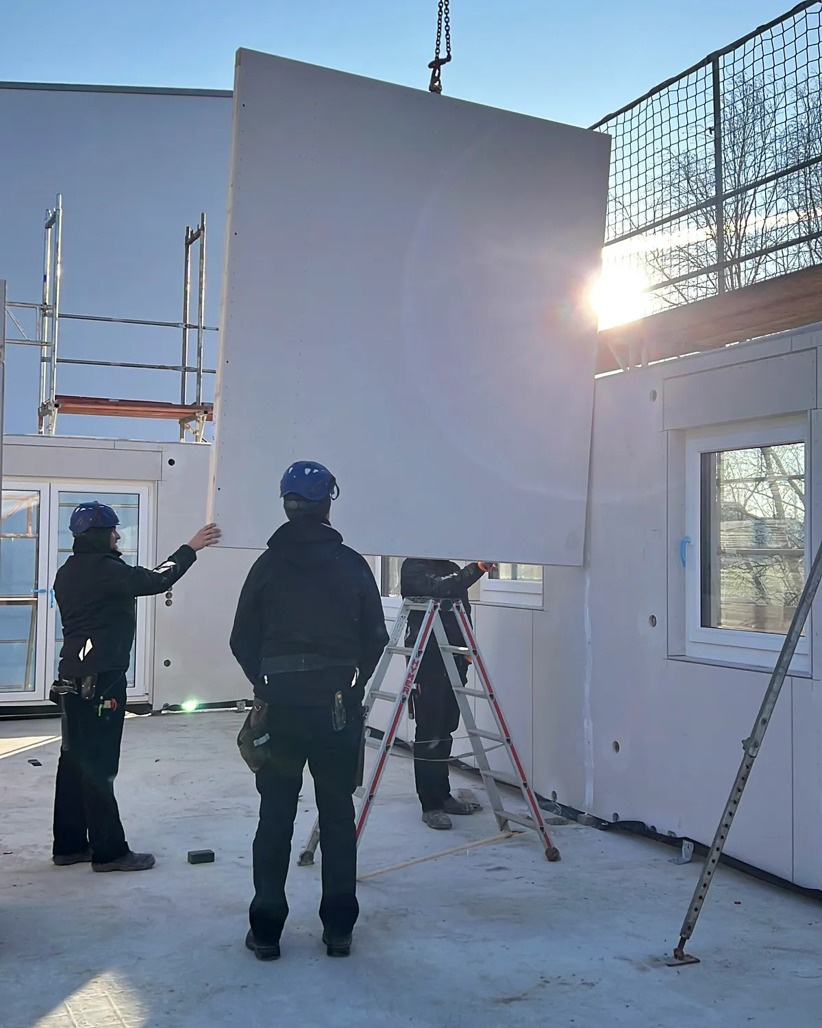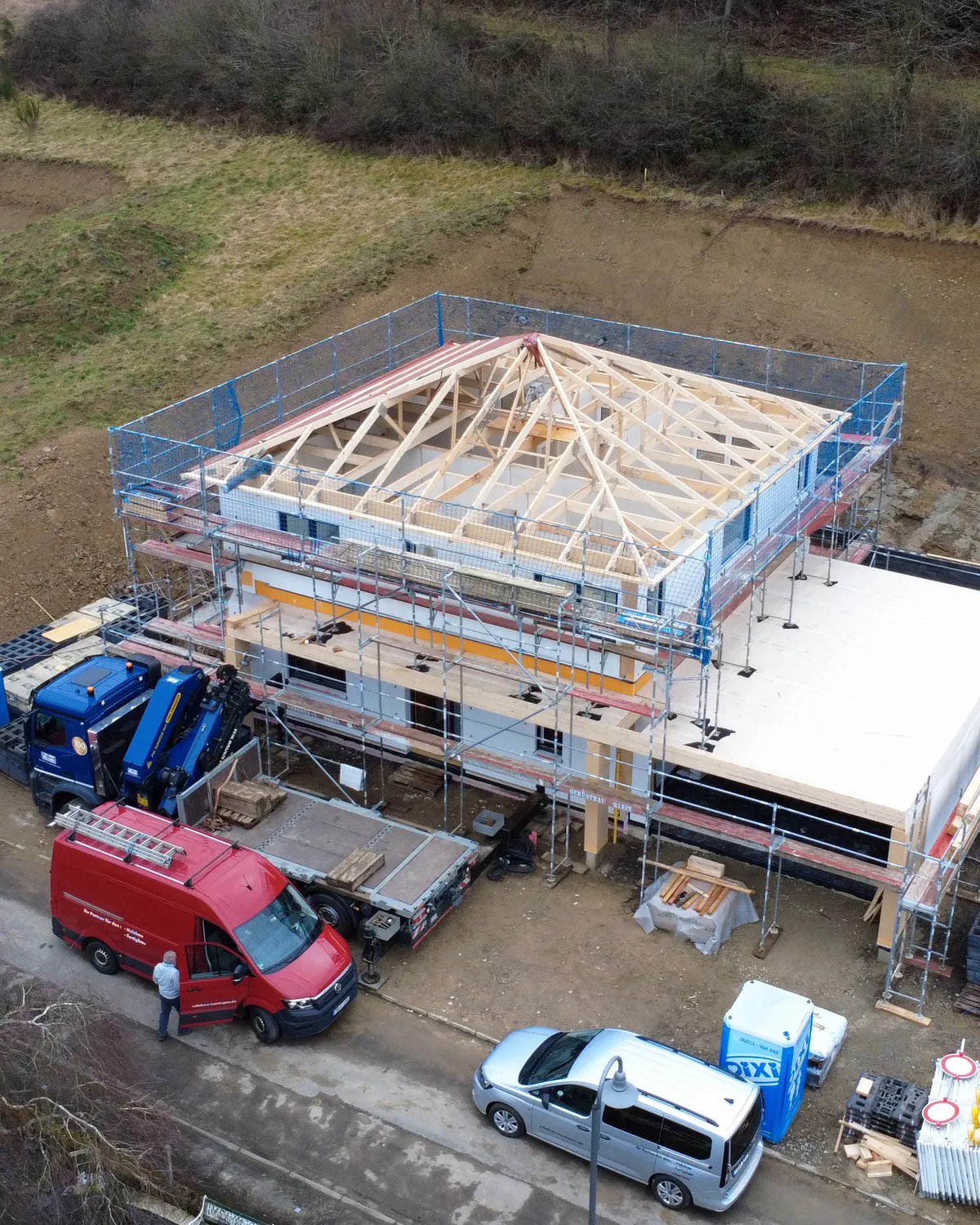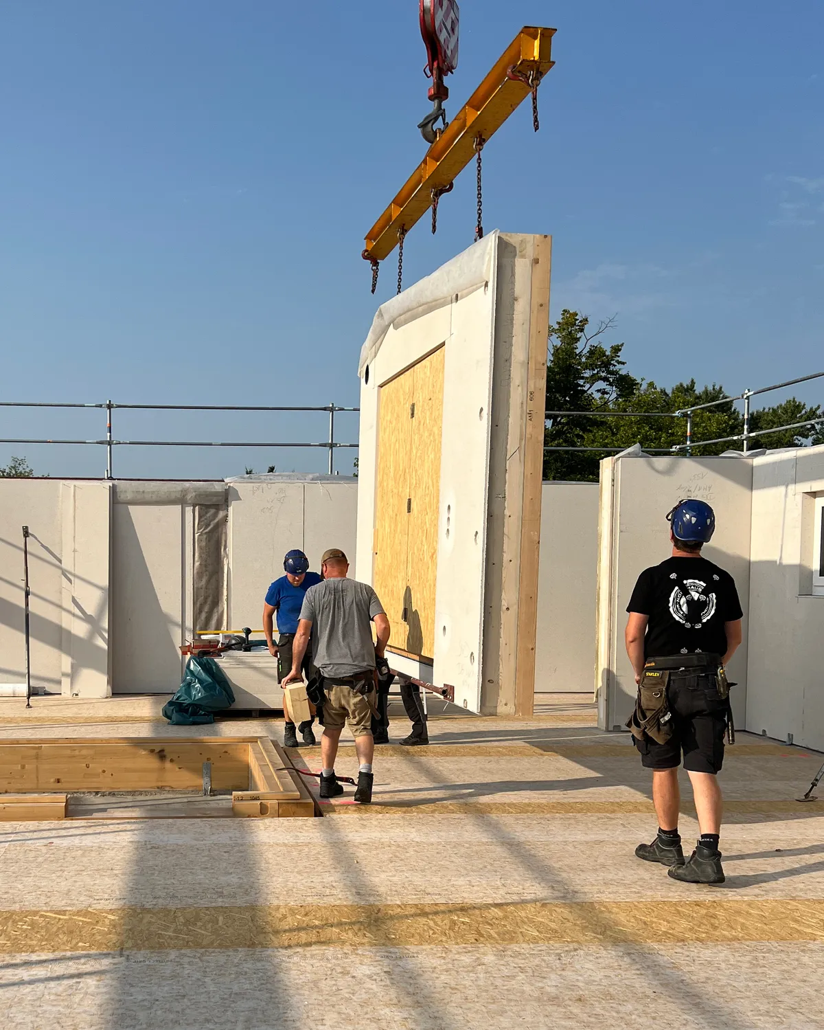 - Errichten von Häusern mit Holz-Fertigbauelementen